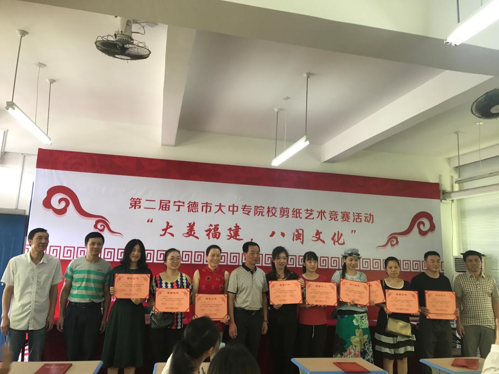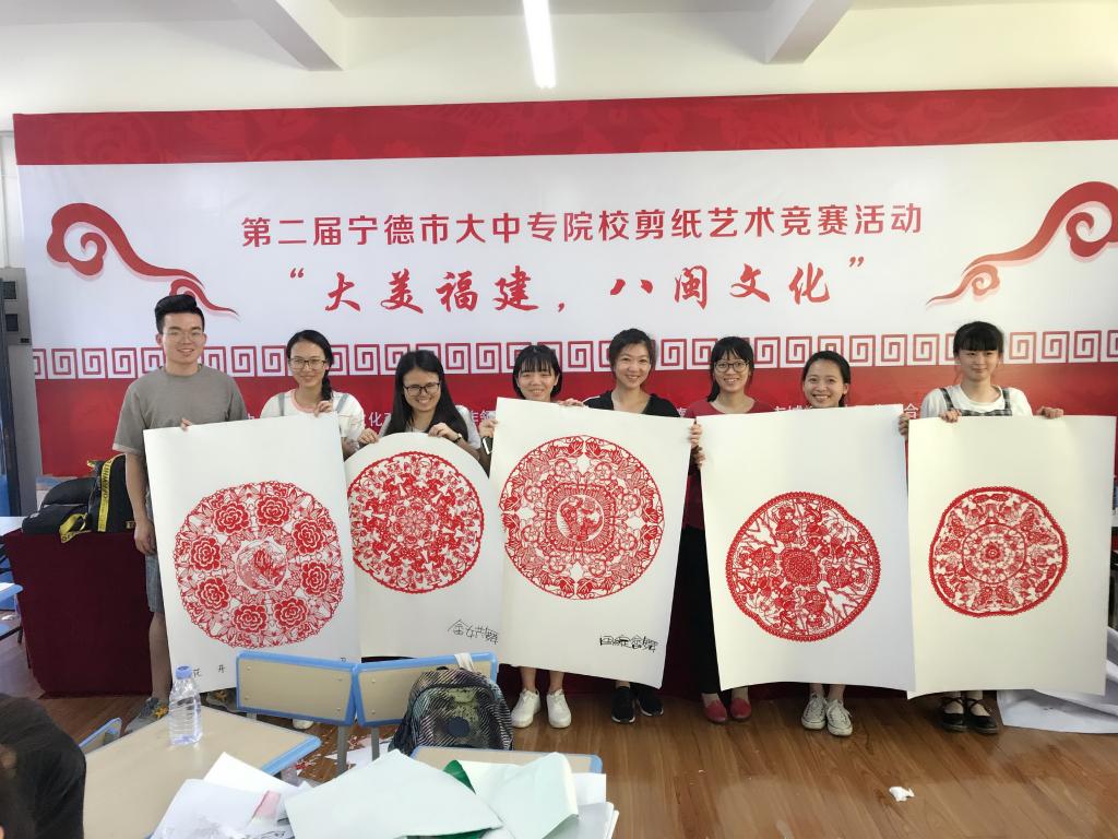 6月10日至11日,第二届宁德市大中专院校剪纸艺术竞赛在宁德职业技术学院开展。我系薛寒老师共带领18名学生代表参加了此次比赛。本次比赛共有127名爱好剪纸的学生参赛,其他学生分别来自宁德职业技术学院、宁德师范学院、宁德技师学院、宁德职专等,他们以福建传统文化为灵感,大胆想象,创作出一幅幅精美绝伦的剪纸作品。